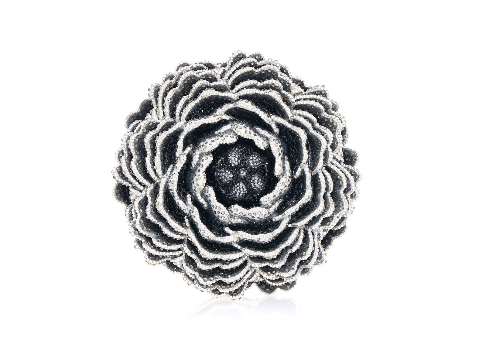 designer novelty bags—each a masterpiece in structural beauty rendered in the deepest ebony. Twinkling, faceted crystals, precisely pavéd, refract light with a captivating brilliance. Silhouettes range from the rigorously geometric, like the