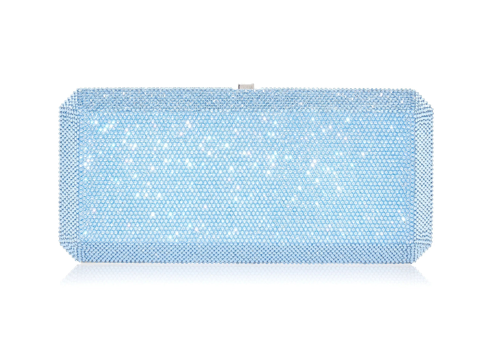 Treat yourself to the luxurious feel of our Slim Slide crystal clutch decked out in sparkling light sapphire crystals. This stunning handbag radiates sophistication, mirroring the clear blue sky of a radiant summer day.