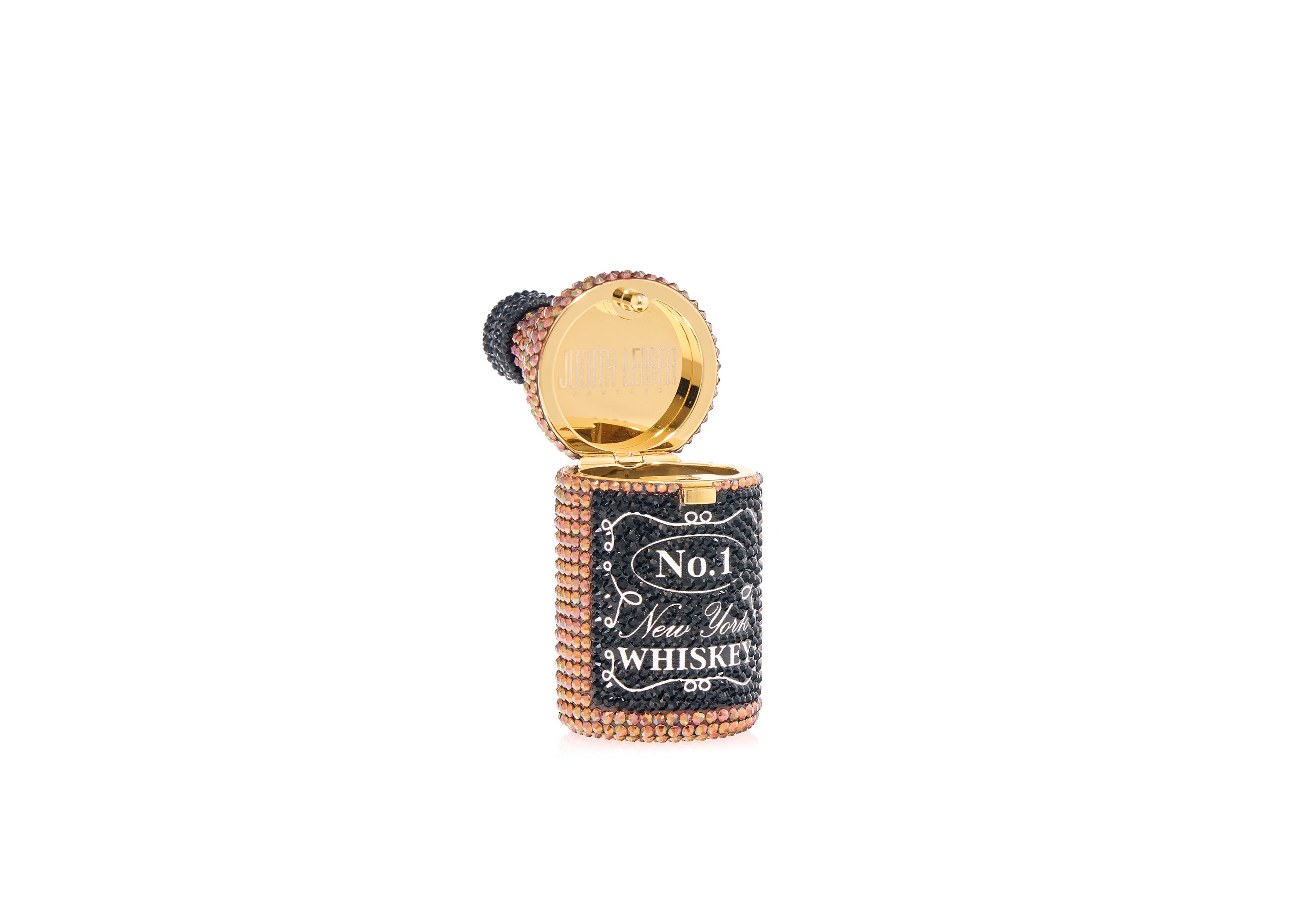 A taste of southern comfort, our miniature Whiskey Bottle is covered in brown crystals and is a playful way to hold pills, jewelry, or to display on your bar top.