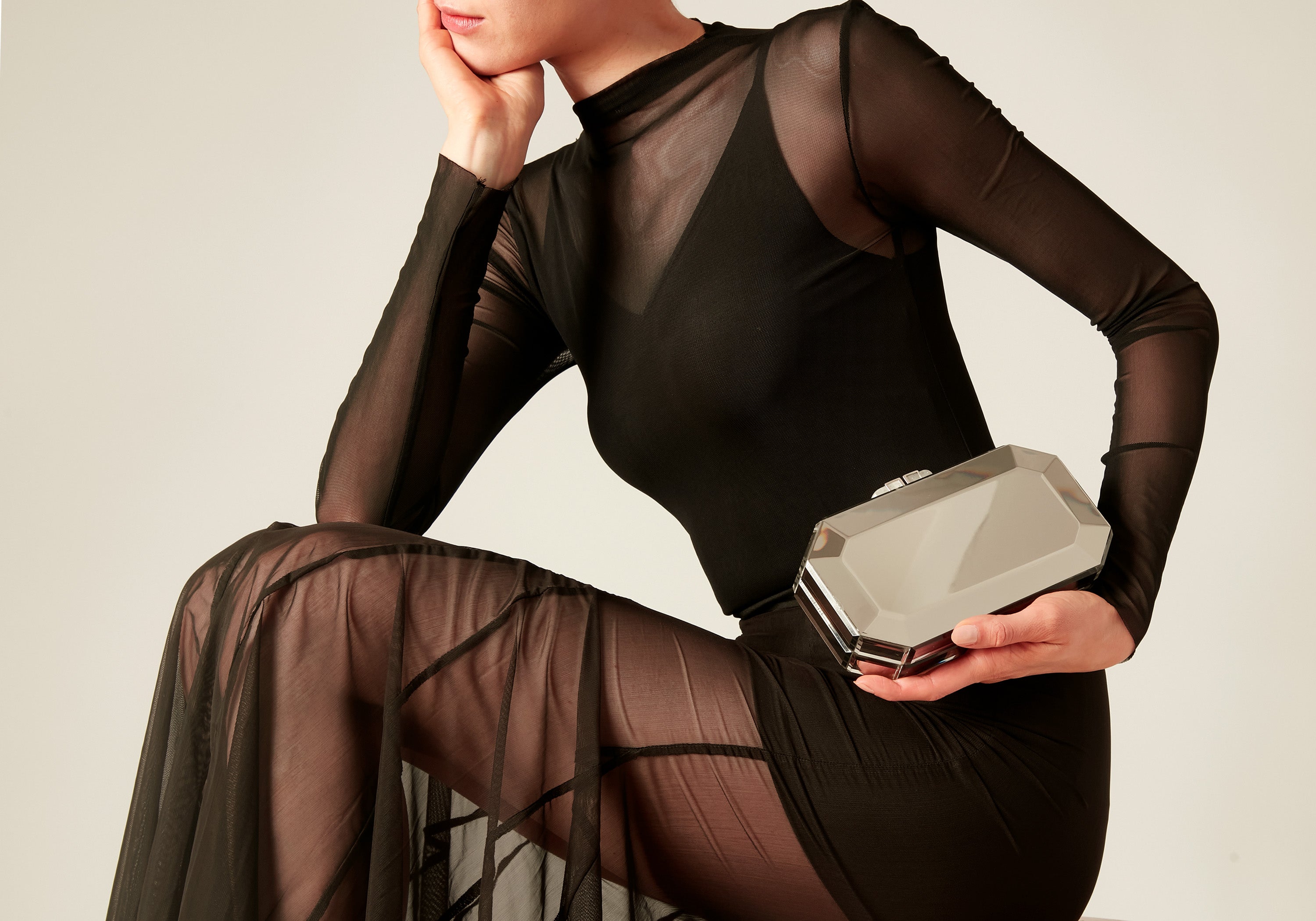 Turn heads with the luminous, Faye hand crafted by Italian artisans, this clutch in radiant silver resin and designed to reflect every ray of light with effortless style. Its sleek, mirrored finish exudes pure sophistication, while the quartz stone clasp adds just the right amount of sparkle. Soft, luxurious resin feels smooth in hand, complemented by a shoulder chain for easy carrying. Sized thoughtfully for your essentials—including your phone—this clutch perfectly balances elegance, practicality, and modern glamour.