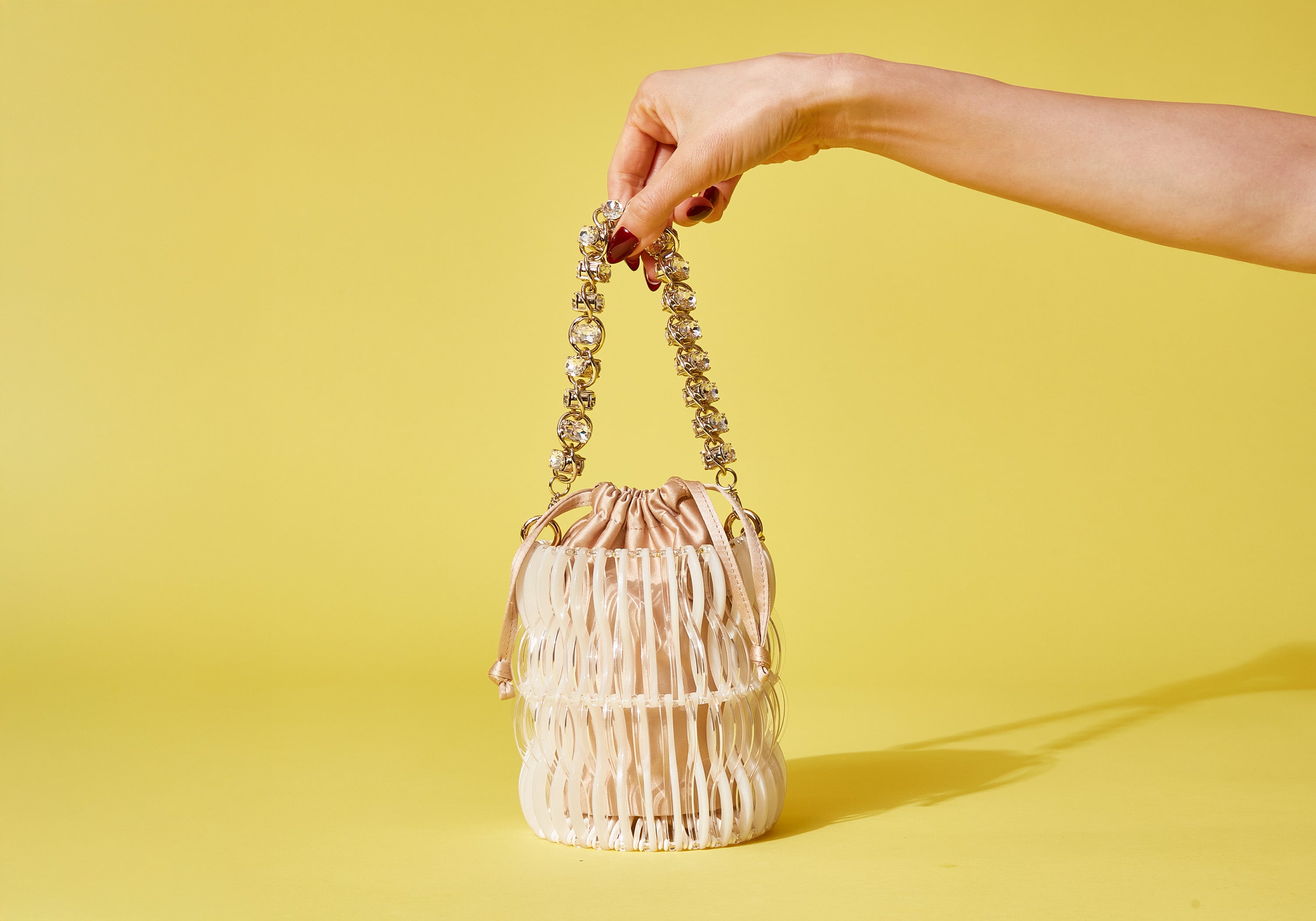 The Harper Pearly showcases a refined silhouette decorated with opaque pearls in a soft and sophisticated neutral palette. Perfect for a summer bridal moment or sunny day, its silky satin interior pouch pairs beautifully with the playful woven resin exterior, creating a look that is both chic and effortlessly versatile. Stylish yet practical, this bag brings elegance and ease to any occasion.