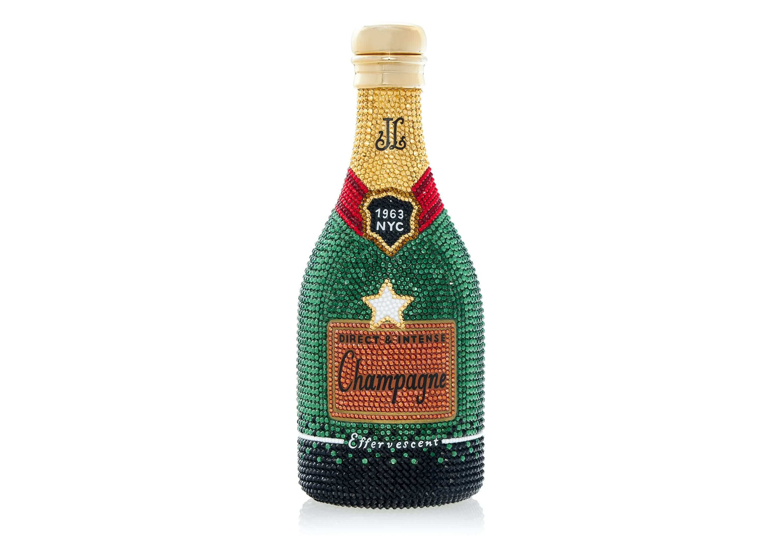 Say ooh la la to luxury! This exquisite crystal evening Bonne Nuit Eiffel Tower handbag captures the Tower's nighttime radiance, adorned with luxurious champagne-hued flatback crystals, intricate metallic-painted lines, and crowned with a quartz and rock crystal push-down closure, ensuring every touch is a moment of elegance and charm.