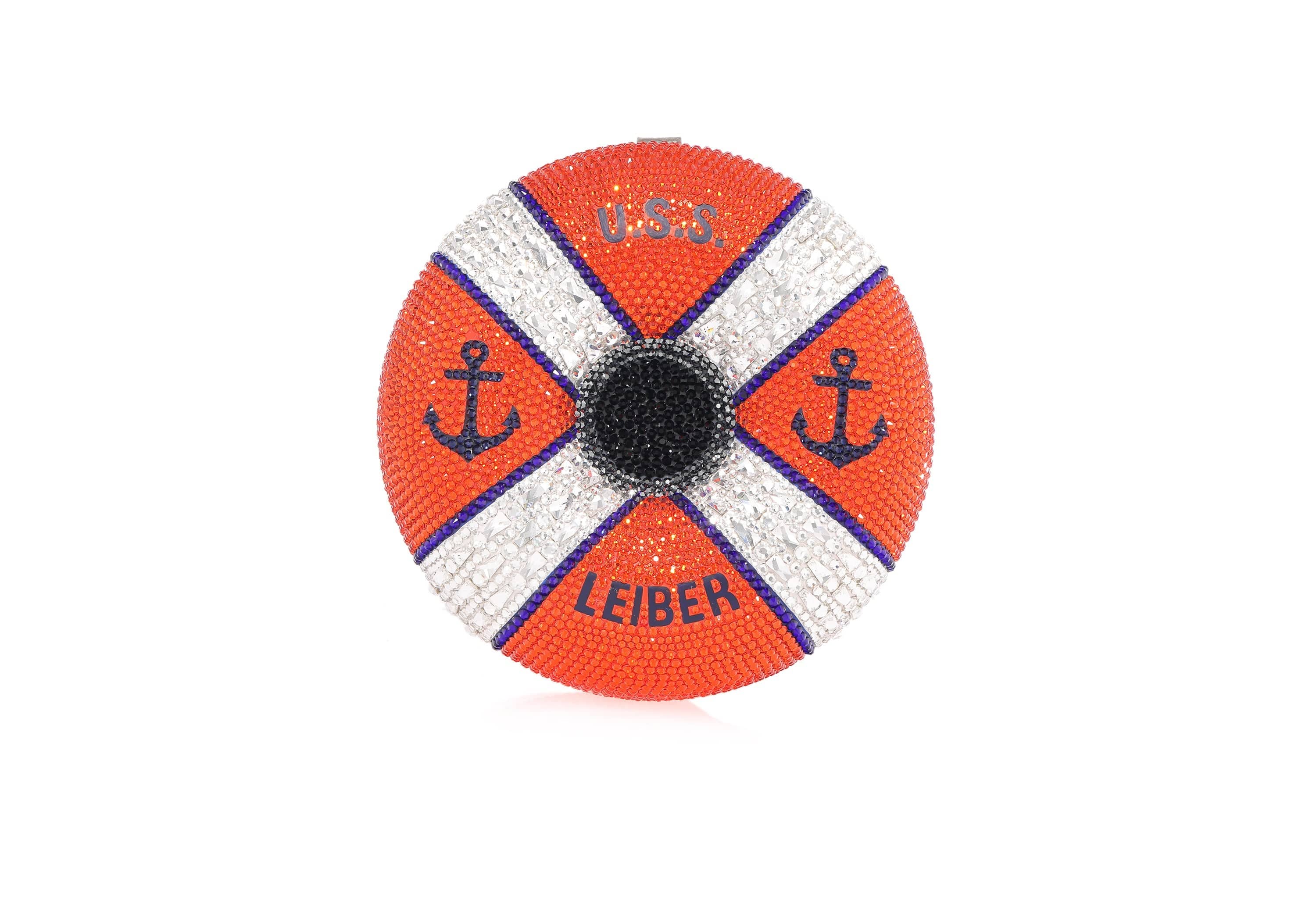 Safety first! This By The Sea Life Ring crystal clutch is playful and vibrant shining in bright orange for a fun in the sun feel with a luxurious twist.