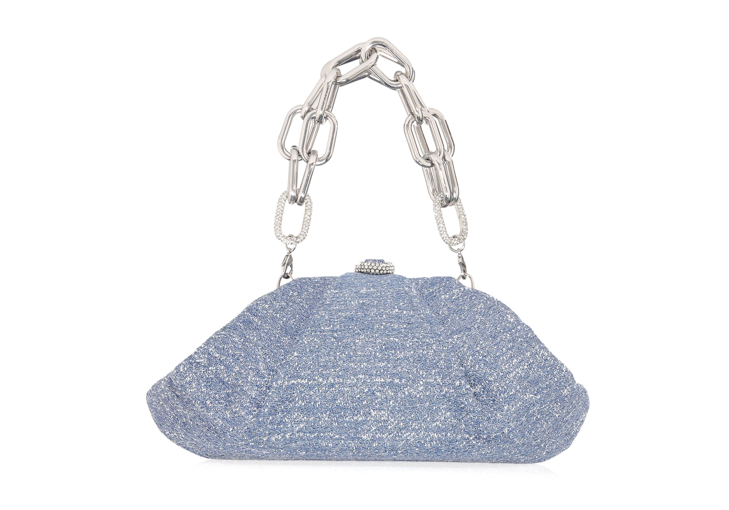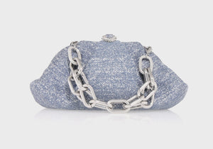 Silver thread is woven beautifully through a soft denim fabric on this Denim Sparkle Gemma bag, striking the perfect balance of casual elegance.