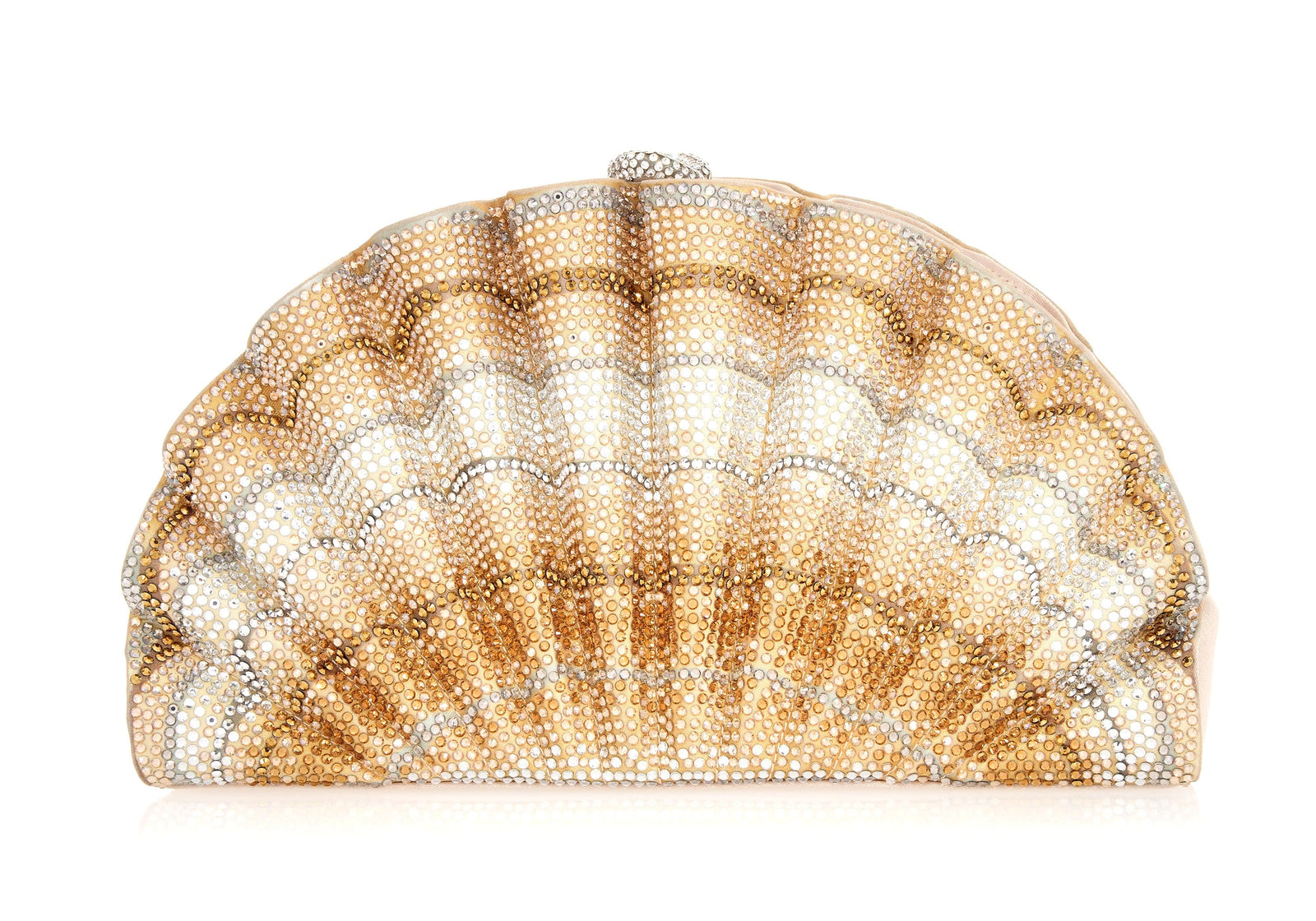 This Hailey Wicker Basket Natural Stone handbag in a neutral tone, features a decorative short top handle with a double-sided cabochon stationed chain for added opulence. Complete with a shoulder strap and Judith Leiber coin, it is the perfect summer accessory for a classic, beachfront setting.