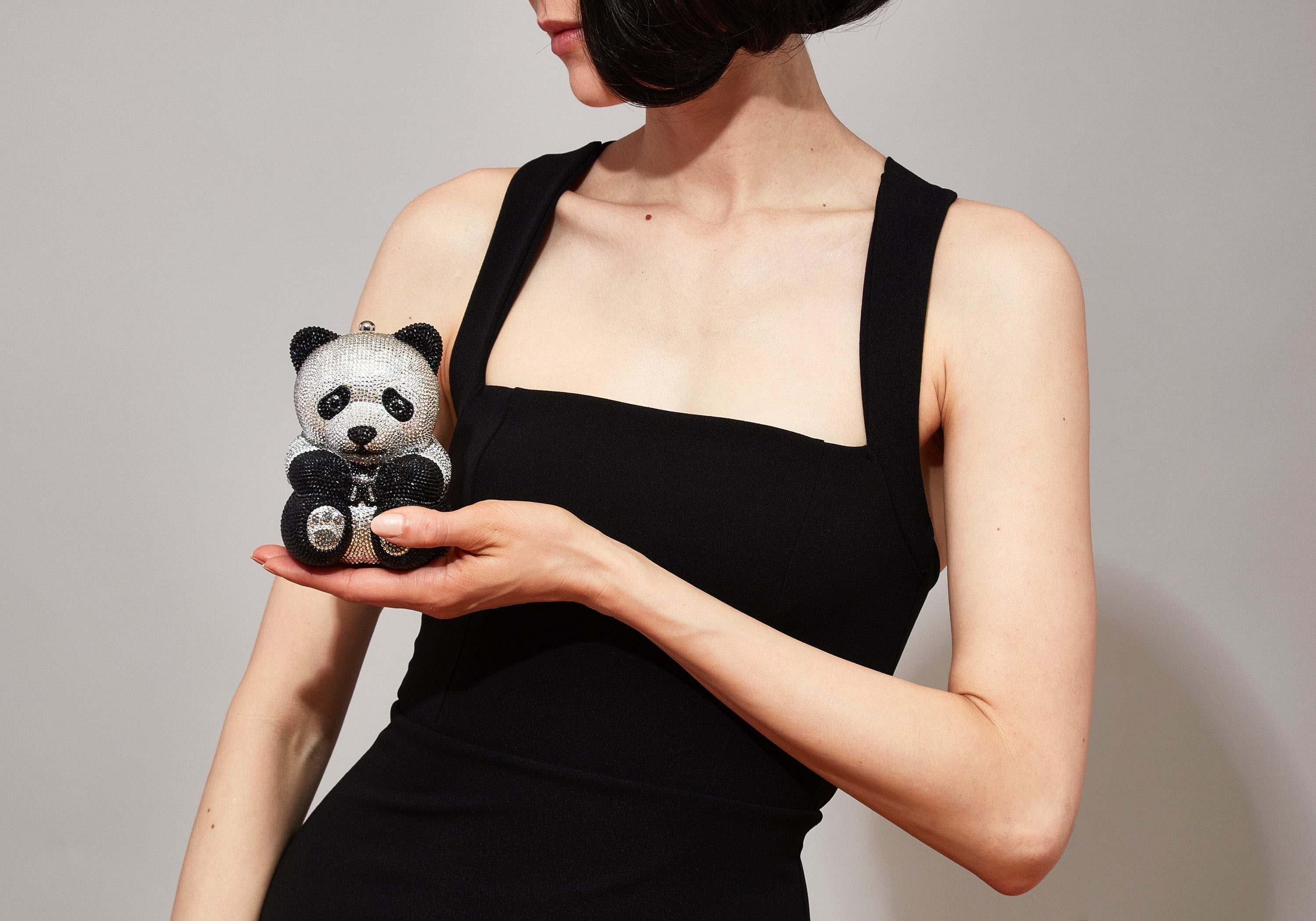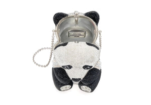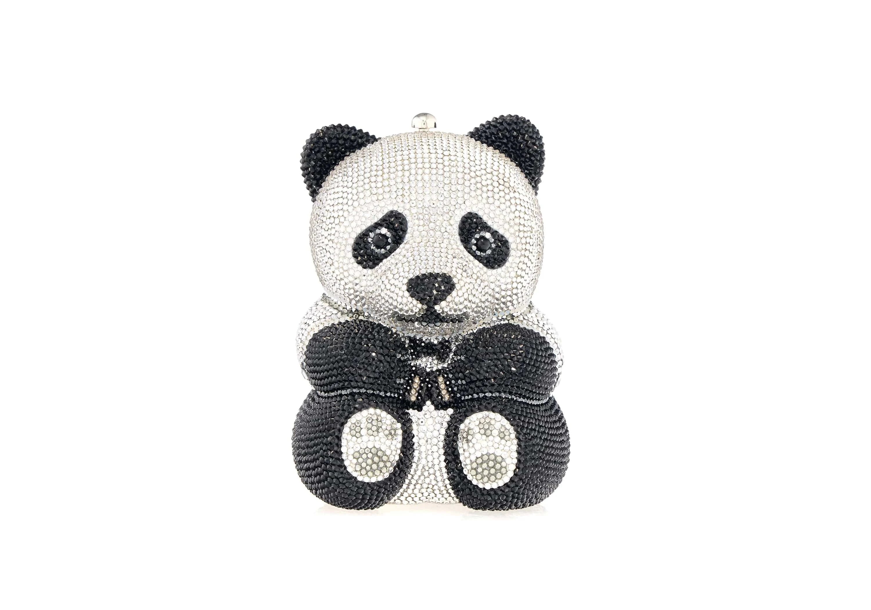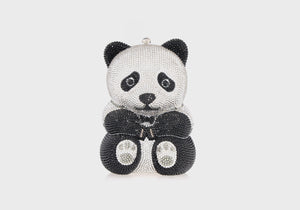 An homage to the adorable and majestic panda bear, our box clutch is cast in handset crystal and rendered in classic hues of black and white. This novelty clutch adorned with handset crystals and inspired by the lovable and regal panda bear. With its nod to nature's beauty, this handbag is a must-have for animal lovers.