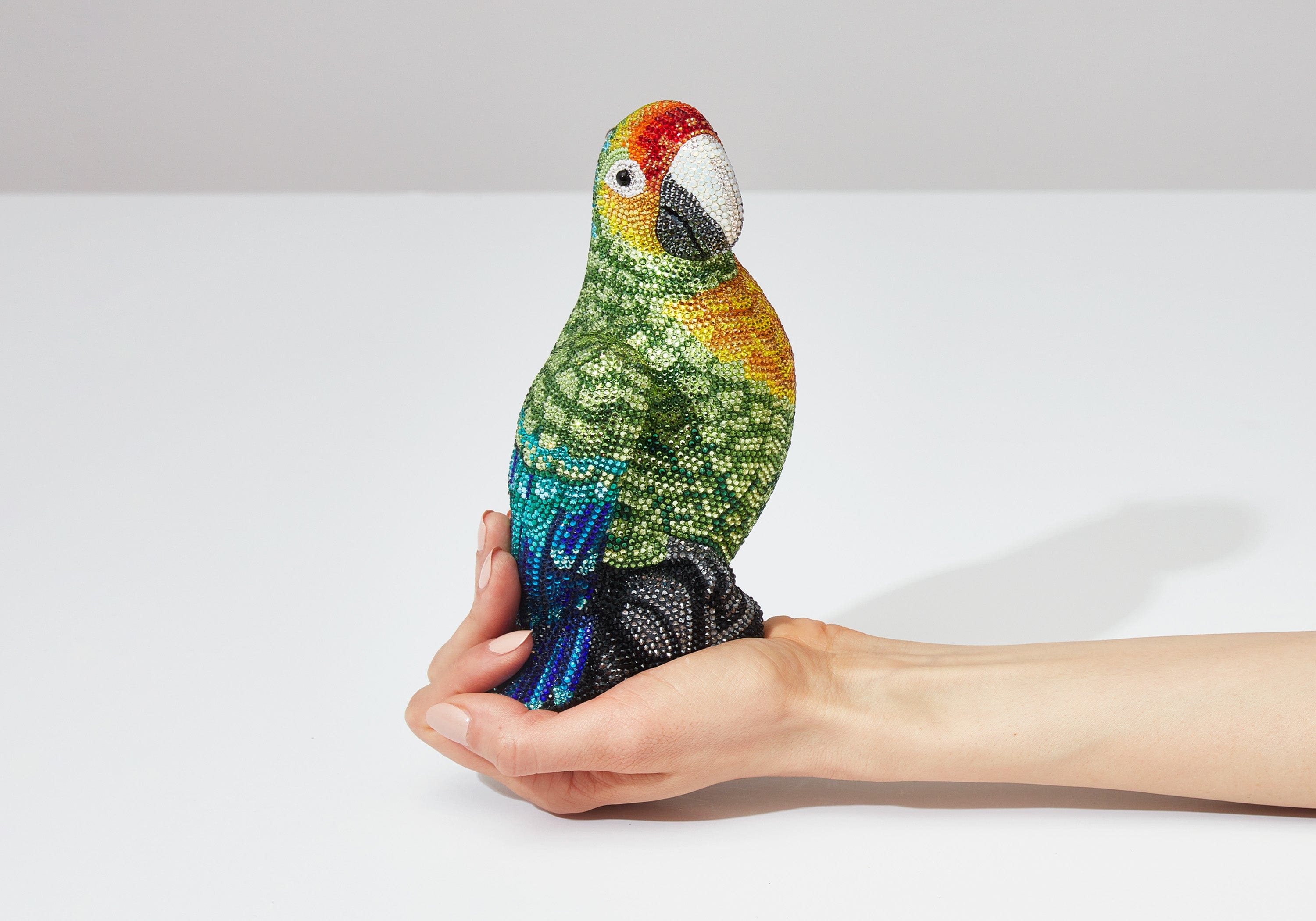 Dazzling in beautiful shades of green, red, yellow, and blue crystals, this Parrot Paolo handbag is a stunning iteration of natural beauty in luxurious fashion.