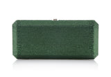 Our Classic Slim Rectangle green crystal clutch strikes the perfect balance between timeless chic and modern sophistication. It's adorned with glimmering leaf colored crystals, creating a look that is evocative of sparkling starlight. This elegant evening clutch will add a touch of luxe sparkle to any outfit.