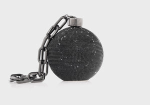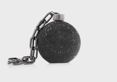 Make a bold statement with our Ball and Chain sphere shaped clutch accented with a unique chain link wristlet for convenient carrying.